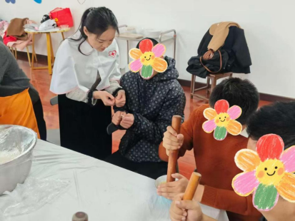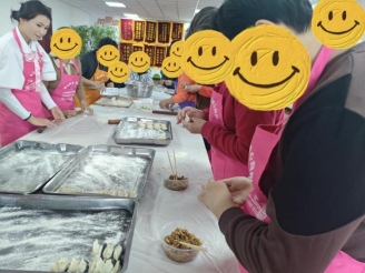 “别怕,我教你。”志愿者把擀面杖塞到患者手里,自己站在身后,手覆手地带他感受“边擀边转”的力度。三遍下来,饺子皮从“地图形”变成“标准圆”,他兴奋地把皮举过头顶:“可以打90分!”另一边,擅长面点的家属把“玫瑰花饺”分解图贴在墙上,护士们蹲在地上和患者一起折褶子,白大褂与花围裙同框,画面意外温馨。