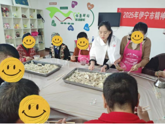 2025年11月7日,立冬。清晨的伊犁康复医院阳光厨房比往常热闹一倍:北京路街道怡康驿站的21名精康服务对象在2名工作人员陪同下来到活动区域,与医院的南丁格尔护理志愿服务队7名志愿者“会师”,30人混合编组,只为一件事——亲手把冬天的第一颗饺子送入口中,也把第一份彼此的牵挂包进馅里。