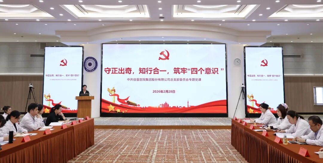 2026年2月28日,中共佳音医院集团股份有限公司总支部委员会“四个意识”专题党课,在乌鲁木齐小葡萄科技广场如期举行。本次活动由党总支副书记姚琛主持,集团全体党员、预备党员及入党积极分子参会,佳音集团黄卫东董事长亲自授课,党总支书记、集团院长梁齐作总结安排。