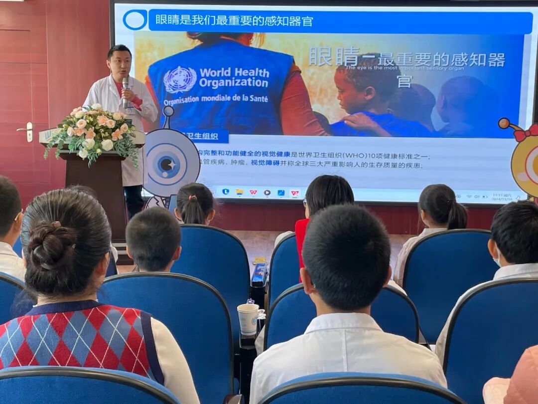 乌鲁木齐市红领巾宣讲团成员、乌鲁木齐普瑞眼科医院小儿眼科副主任医师杨胜为同学们讲解青少年眼健康知识。他详细的讲解了近视防控的方法和日常生活如何护眼。活动现场气氛热烈,同学们积极回应,将学到的知识点牢记于心。